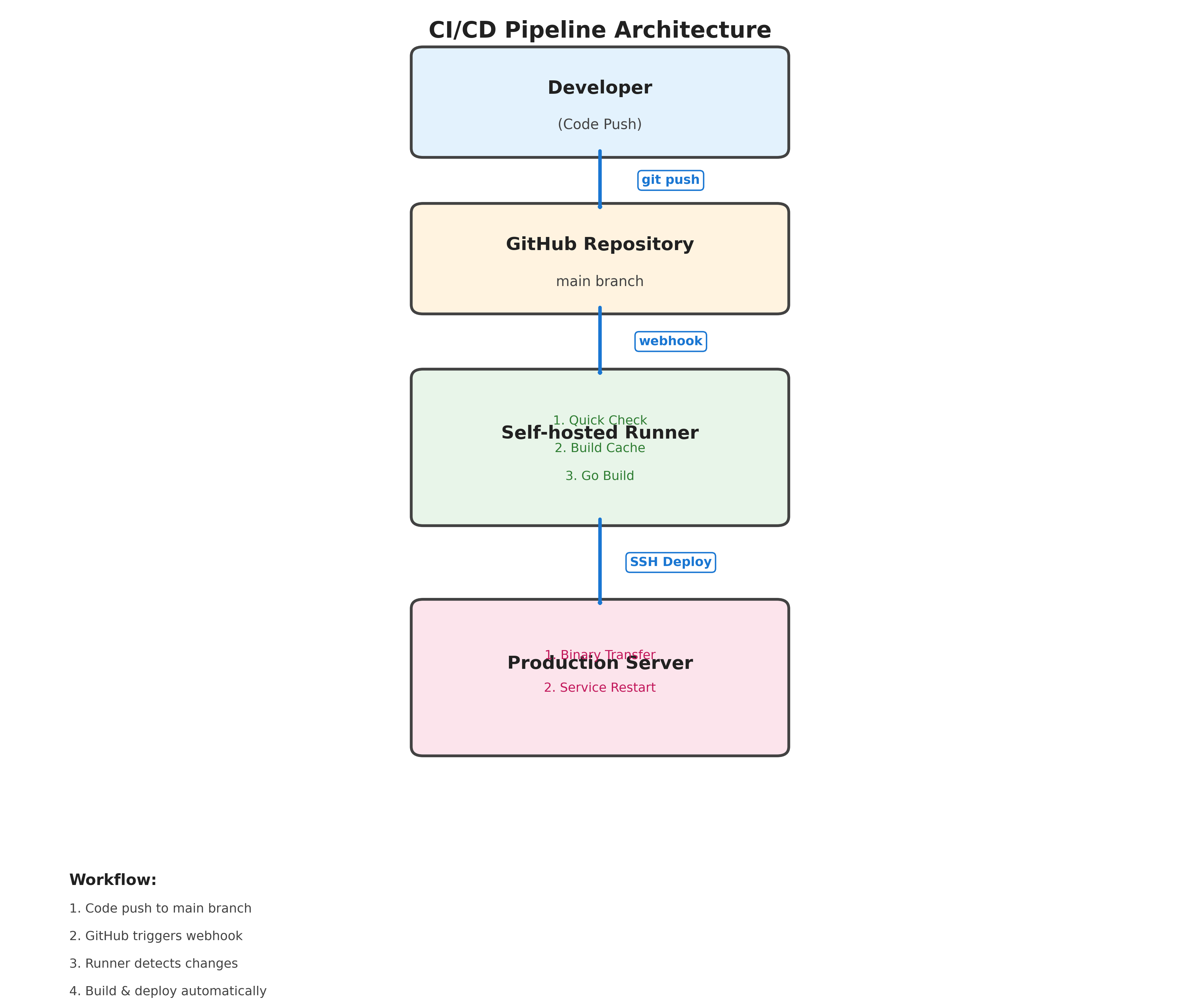 - 빠른 배포: 빌드는 Runner에서 수행, 서버는 바이너리만 받아서 실행