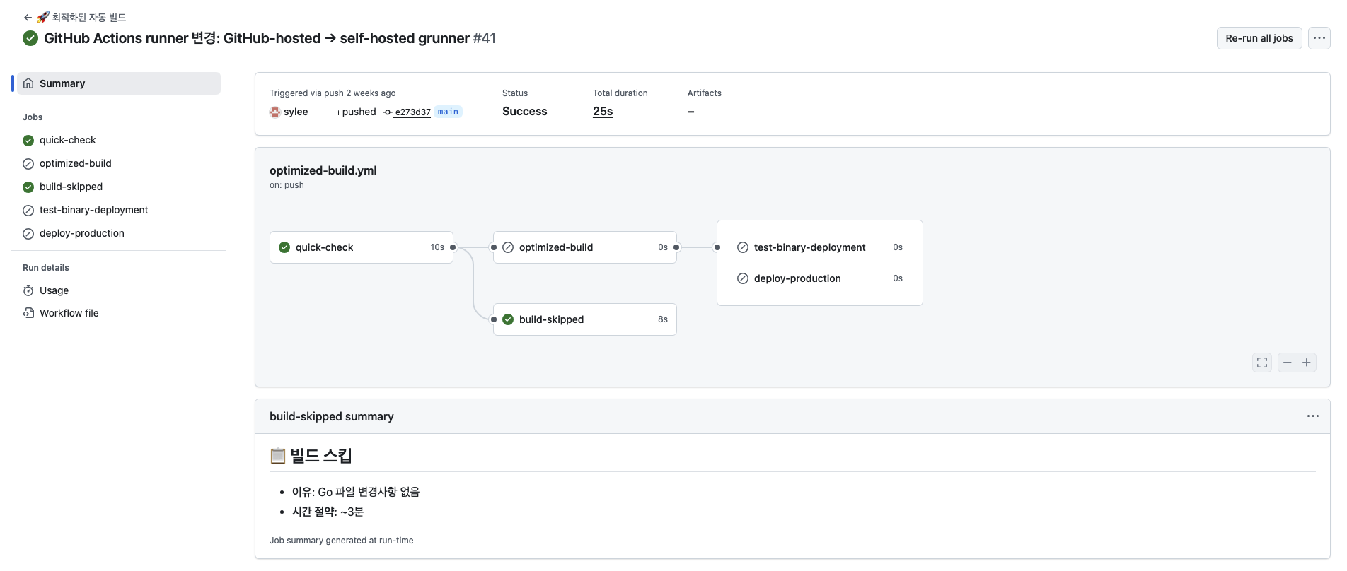 특히 이미 서버 인프라를 보유하고 있다면, GitHub-hosted Runner의 시간 제한 없이 무제한으로 자동화를 활용할 수 있다는 점이 큰 장점이라 생각합니다.